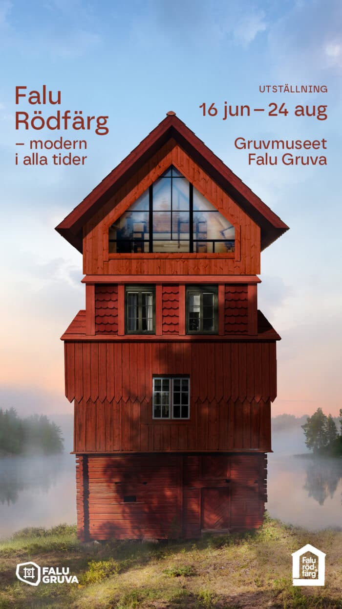 The exhibition “Falu Rödfärg – modern in all times” portrays how the red-painted houses became a symbol of Sweden and Swedish heritage. The red paint became an affordable option for most people, representing prosperity. The red color created a national identity, and red cottages with white corners became the epitome of Sweden worldwide.