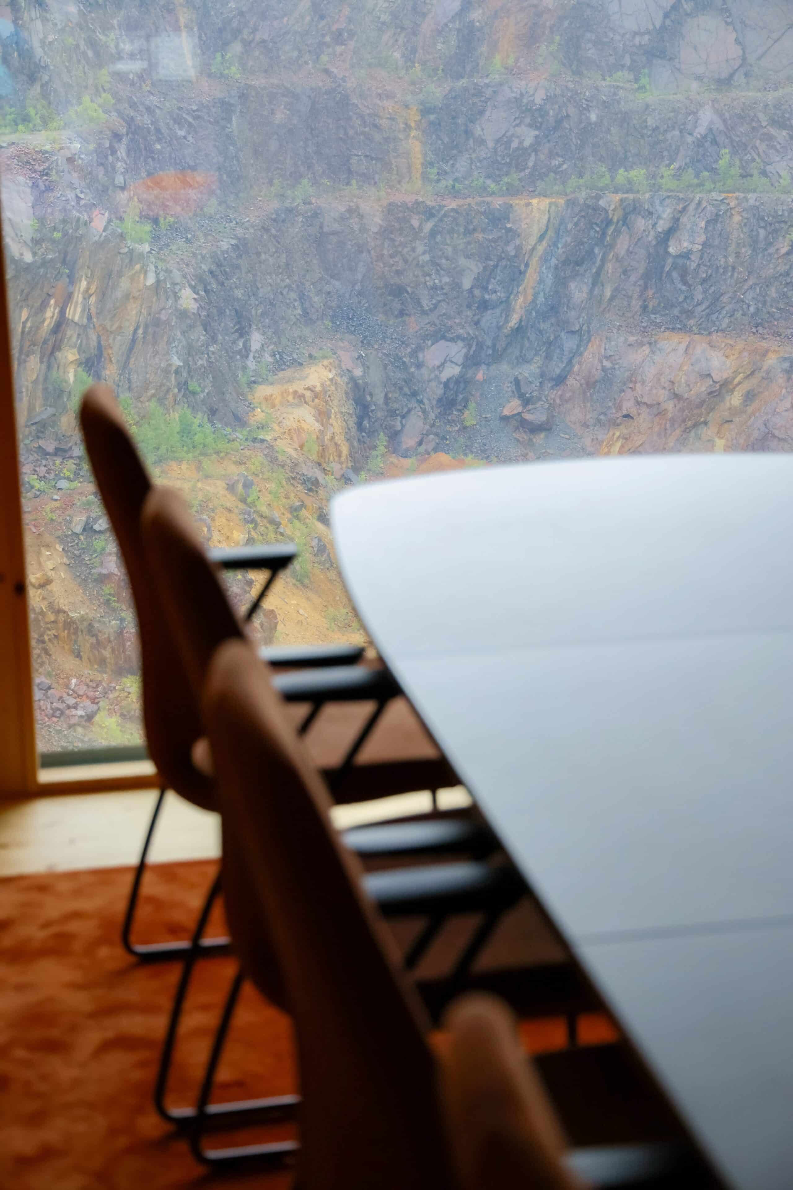 Falu Gruvas utsiktstorn stod klart sommaren 2025 och det ger verkligen pirr i magen. Under utsiktsplatsen finns konferenslokalen Utsikten. Ett stort panoramafönster ger känslan av att ni faktiskt befinner er i Stora Stöten.
